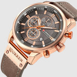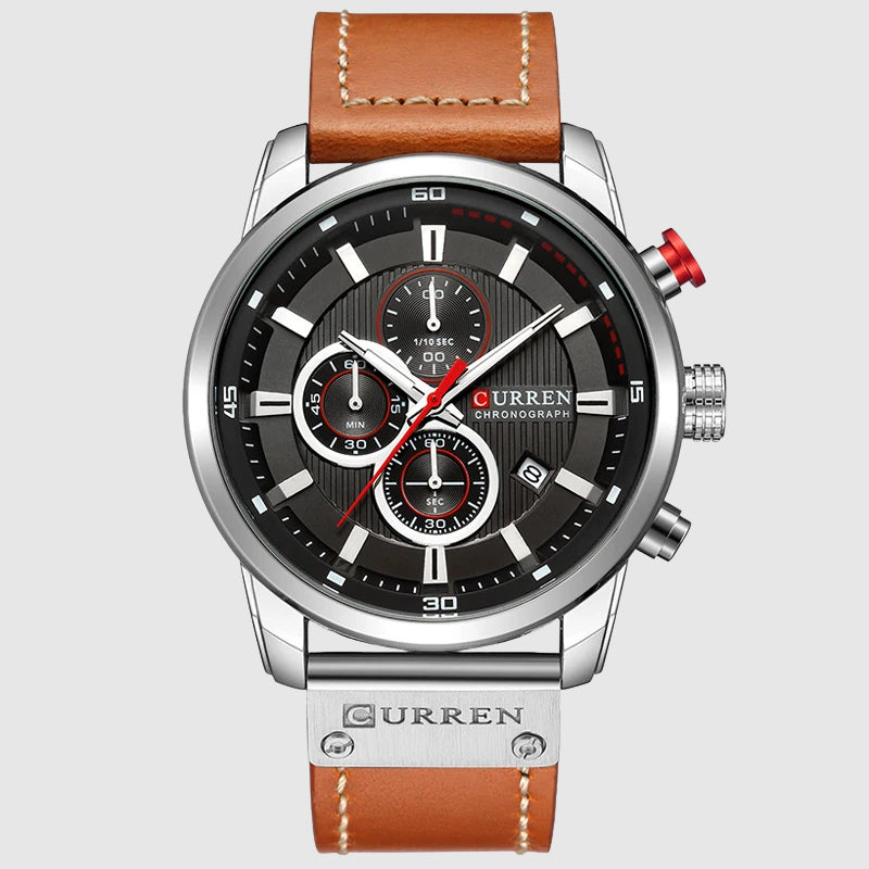 Ovaj sat je izjava autoriteta i simbol probirljivog ukusa - izrađen za muškarca čiji je stil jednako promišljen kao i njegovi postupci. Klasični kožni remen odaje počast trajnom stilu, dok funkcionalni podbrojčanici dodaju sloj preciznosti njegovom bezvremenskom dizajnu.