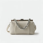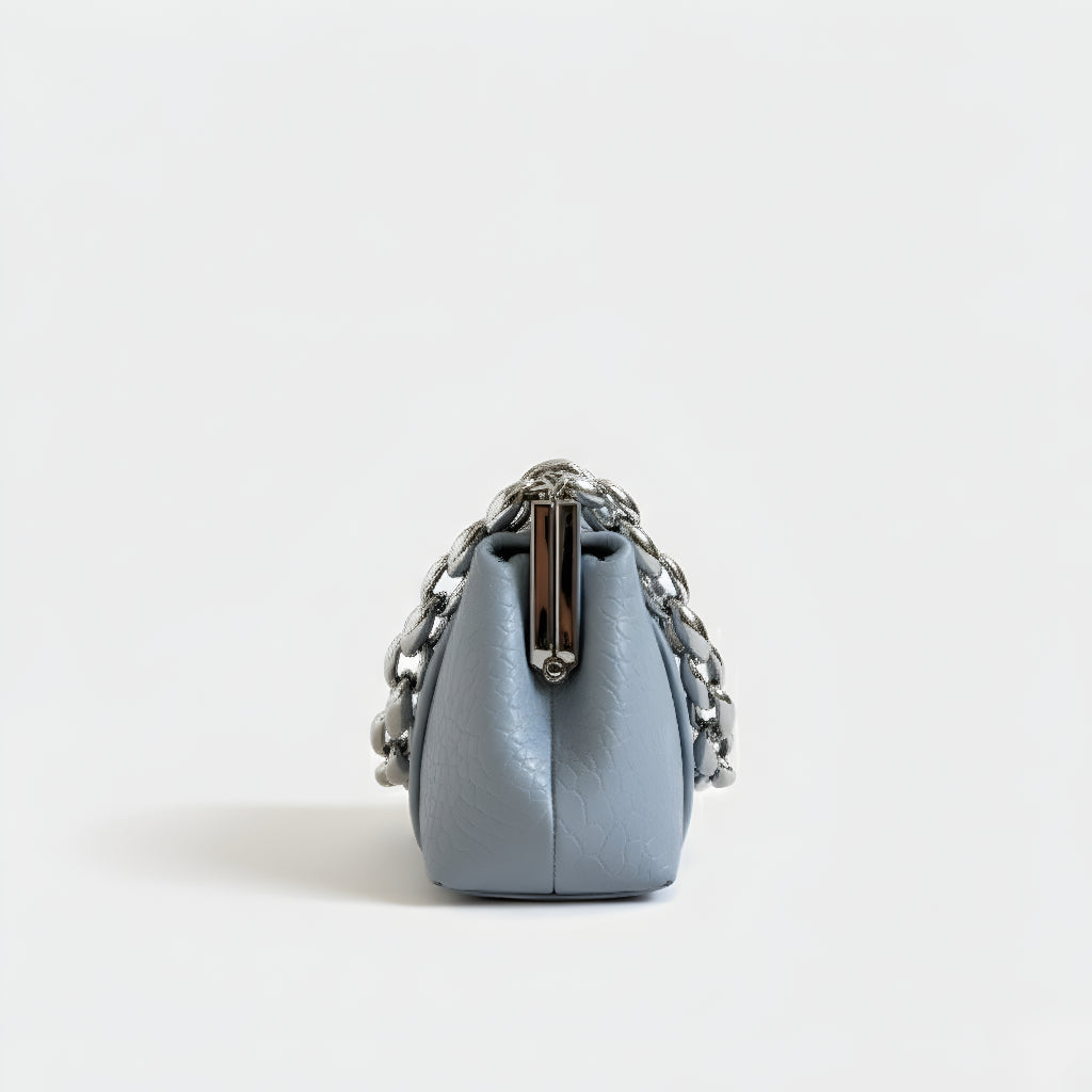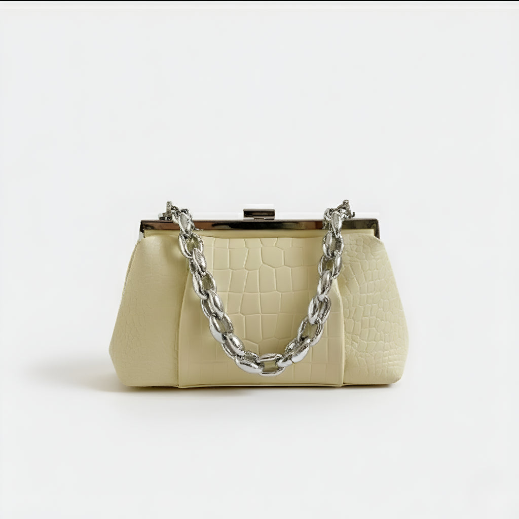 Sa teksturom krokodila i čvrstom strukturom, ova torba spaja sofisticiranost i osobnost u jednom dodatku. Njen klasični metalni zatvarač i robusna lančana ručka stvaraju modernu i upečatljivu kontrast. Idealna je za one koji traže kompaktni, praktični komad s jakom prisutnošću, bilo za dan ili noć.