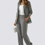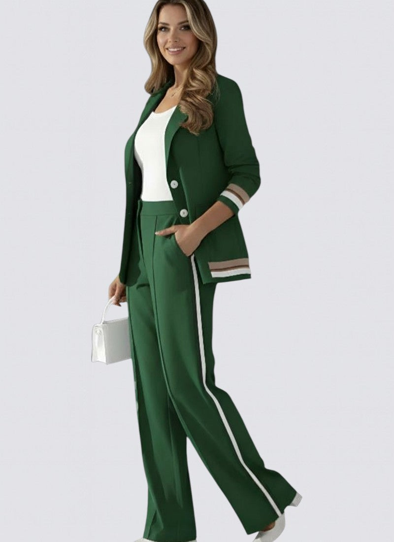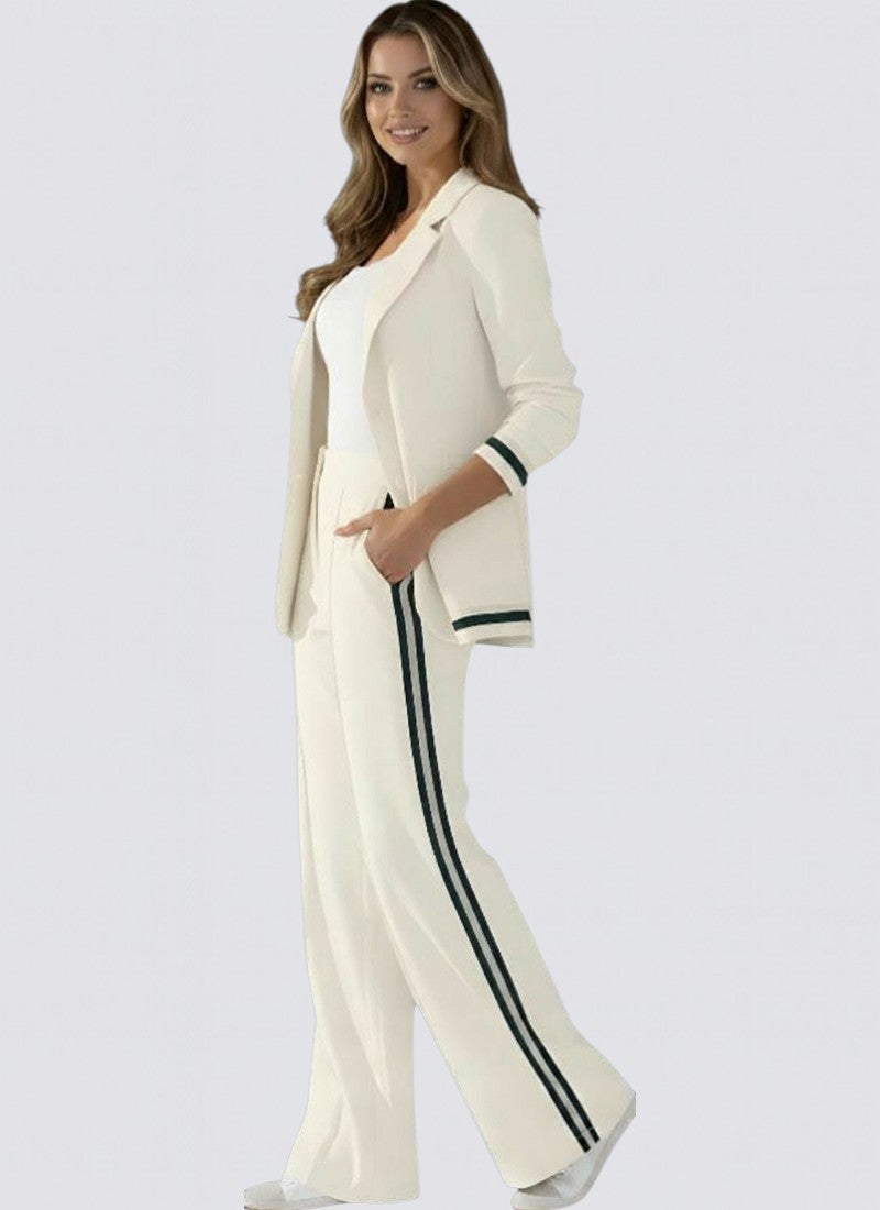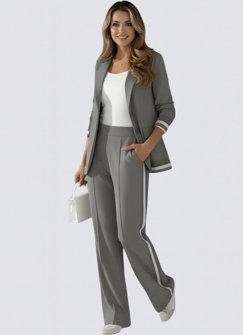 Laskav kroj – široke nogavice vizualno izdužuju, a sako lijepo oblikuje liniju.