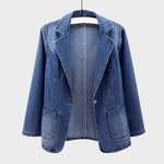 Sandra - Klasični Denim Blazer donosi klasičan kroj s modernim šarmom i suptilnom dozom sofisticiranosti. Savršen je za ured, druženja i slobodno vrijeme, a njegovi suptilni detalji dodaju izražajan, ali nenametljiv dojam.