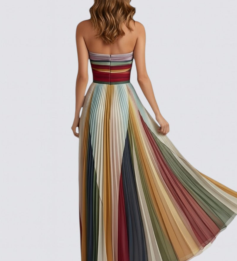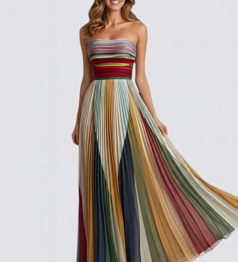Mila – Elegantna višebojna prugasta haljina s V-izrezom