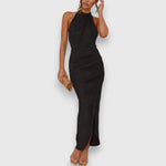 Haljina Flora kombinira zavodljivu eleganciju s daškom glamura. Sa svojim dizajnom s izrezom na leđima, naramenicama i otkrivenim ramenima, donosi stylish naglaske, dok otvor s bočne strane naglašava siluetu.