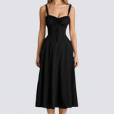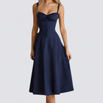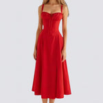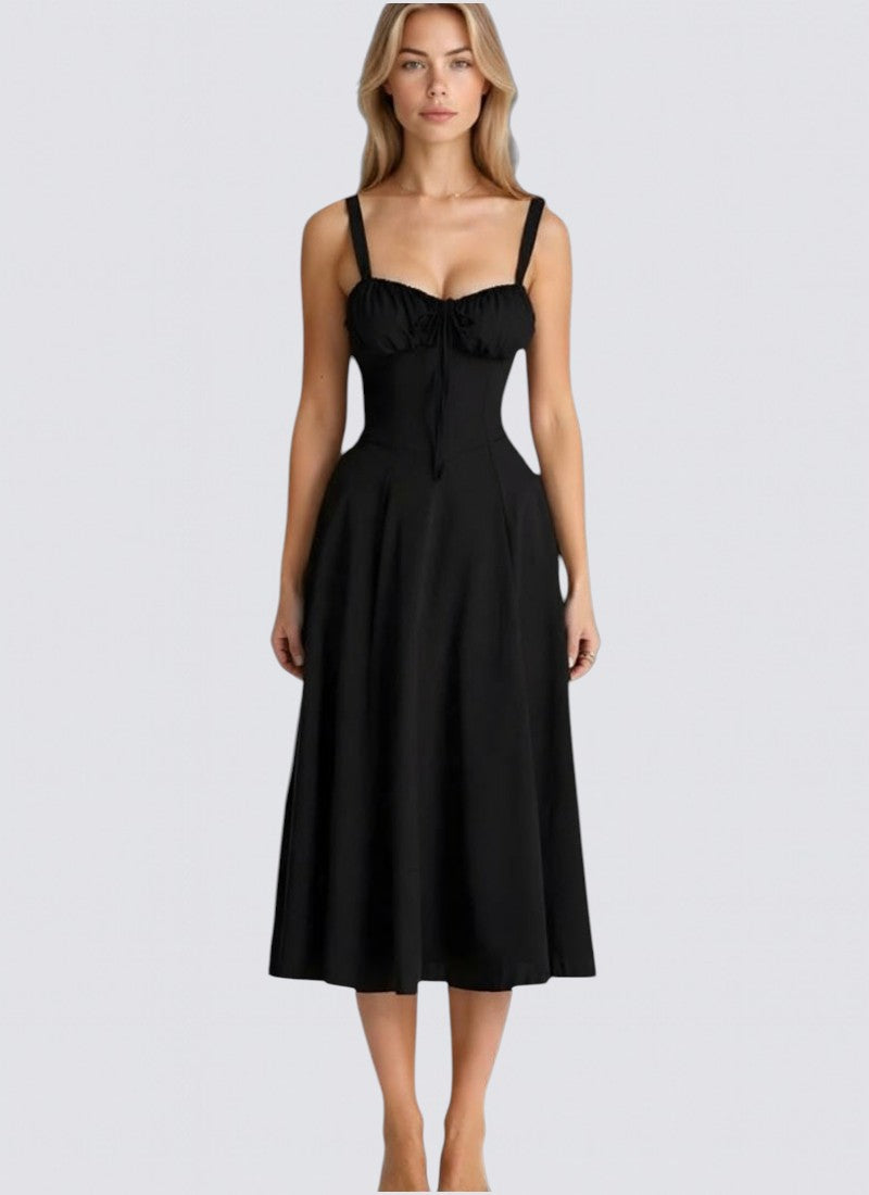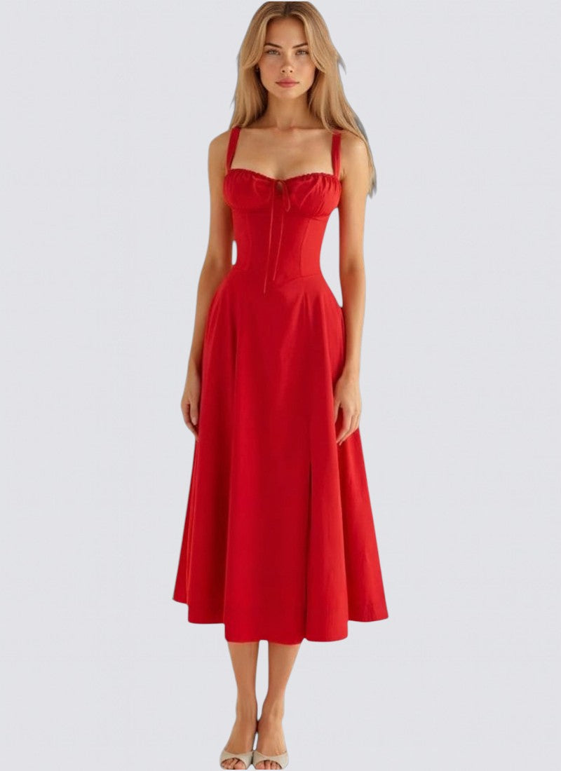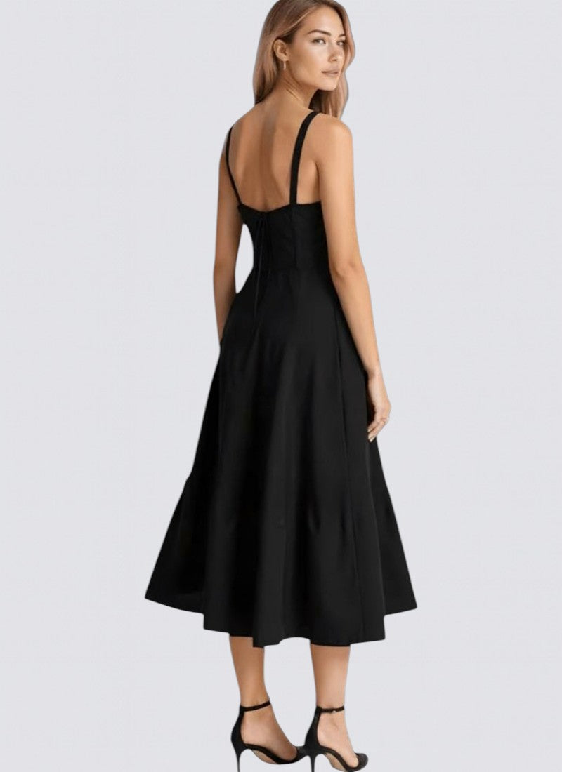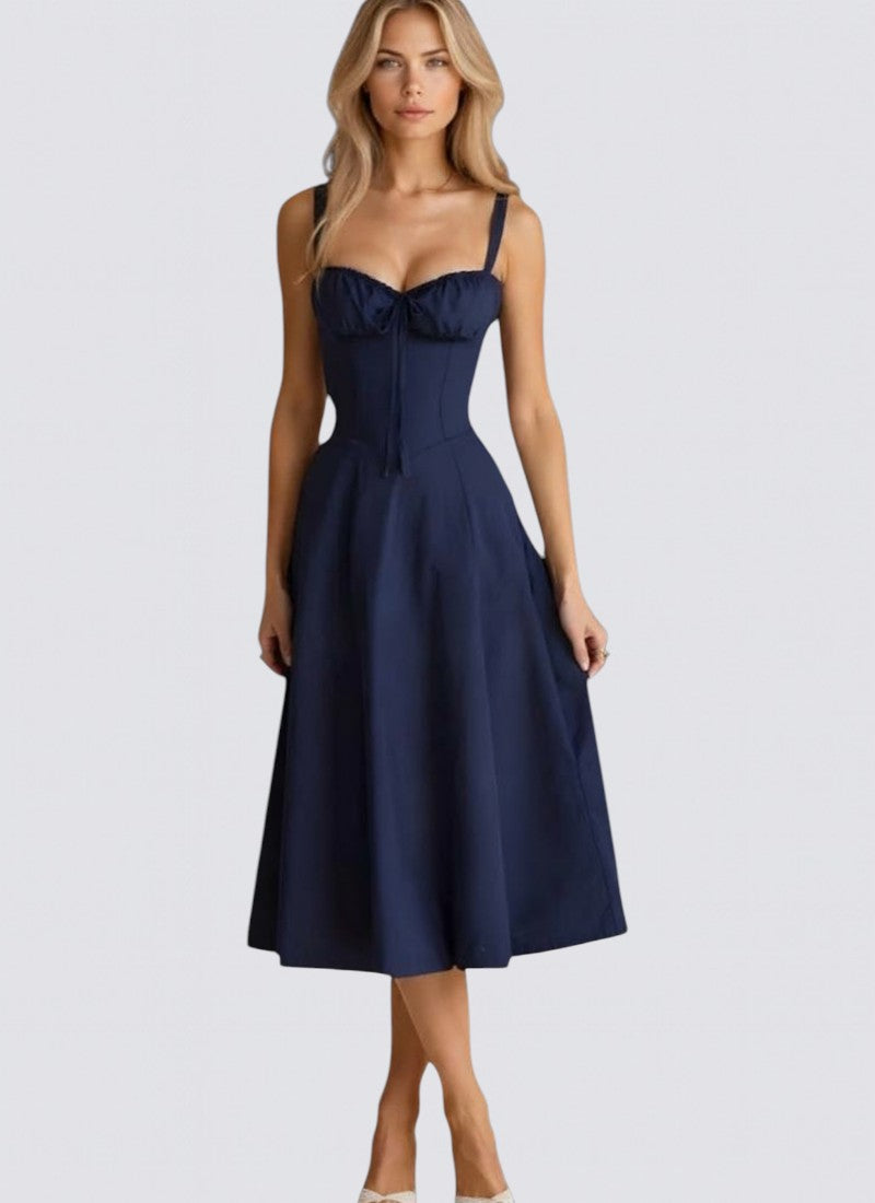 Midi haljina Kiana kombinira uski korzet s lepršavom suknjom – savršena za elegantne pojave.