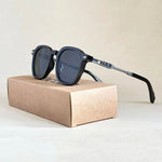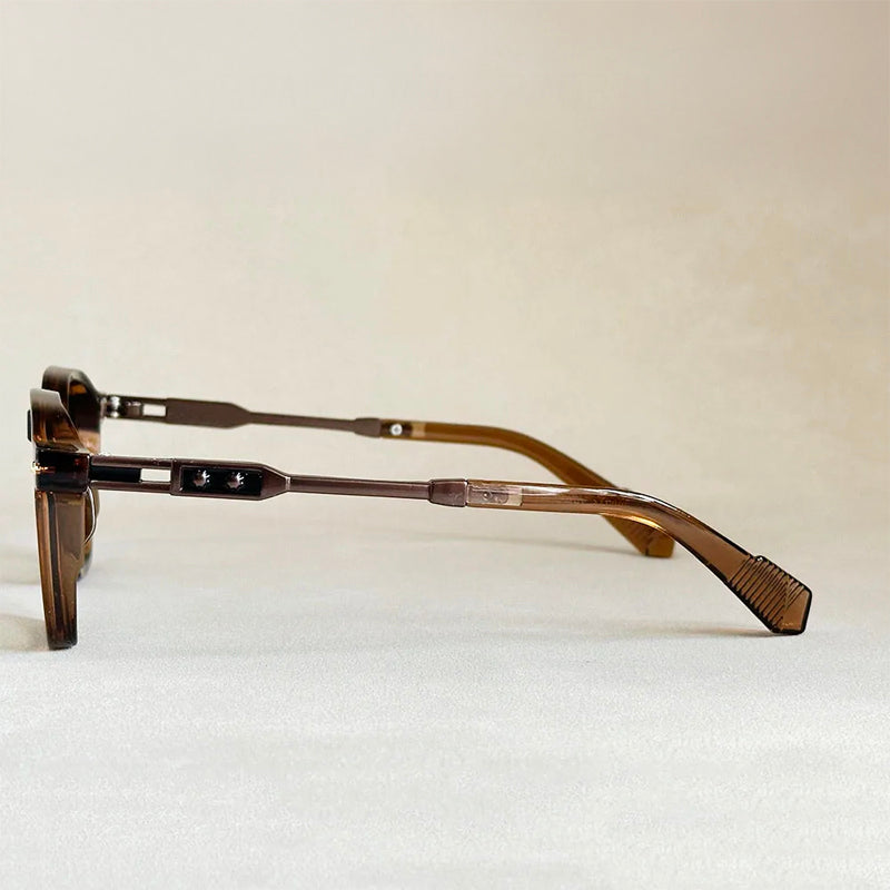 Dizajnirane s odvažnim, četvrtastim okvirom, ove naočale ostavljaju samouvjeren dojam bez da su previše istaknute. Suptilno predimenzionirana silueta laska svakom obliku lica, dok zatamnjene leće nude UV zaštitu i moderan vintage štih. Detalji metalnih šarki i precizno oblikovane ručke osiguravaju uglađen završetak s dovoljno hrapavosti.